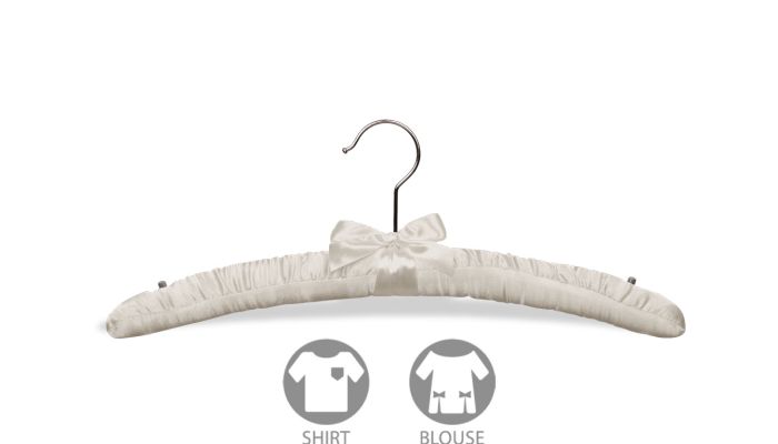 15" Flat Satin Padded Hanger, Ivory, Brass Hook