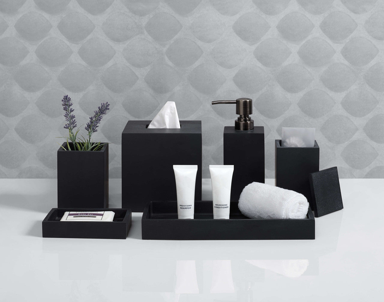 With its smooth sides and sleek silhouettes, this collection's minimalist design fits both traditional and contemporary spaces. Its sanded resin construction is classic but edgy, and conveys a sense of timelessness.