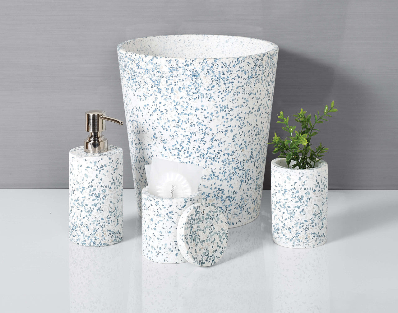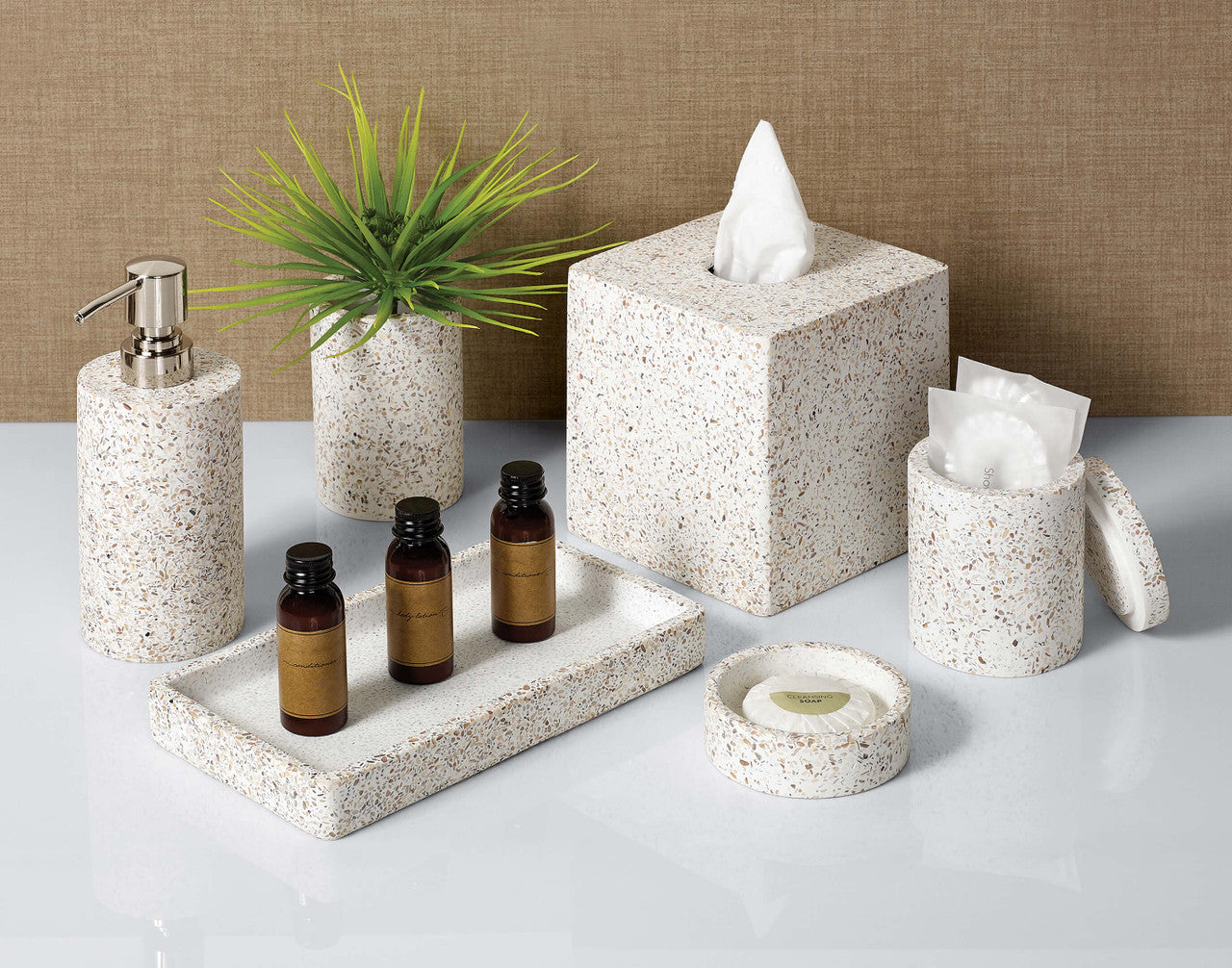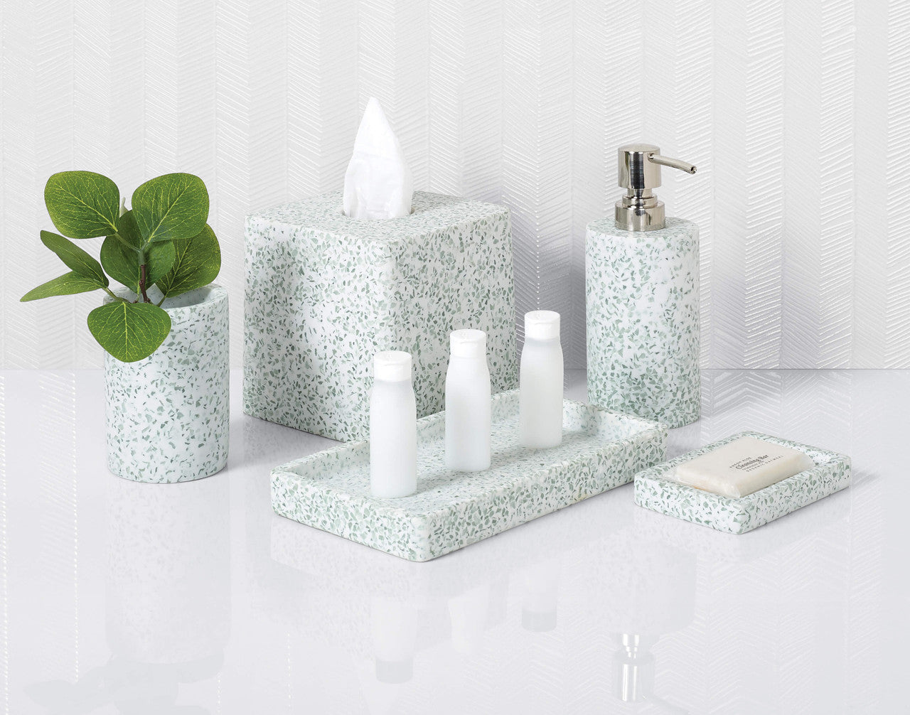 Recycled glass, stone and resin create a timeless terrazzo design that sets these pieces apart. Three organic hues add to this stunning collection's allure.